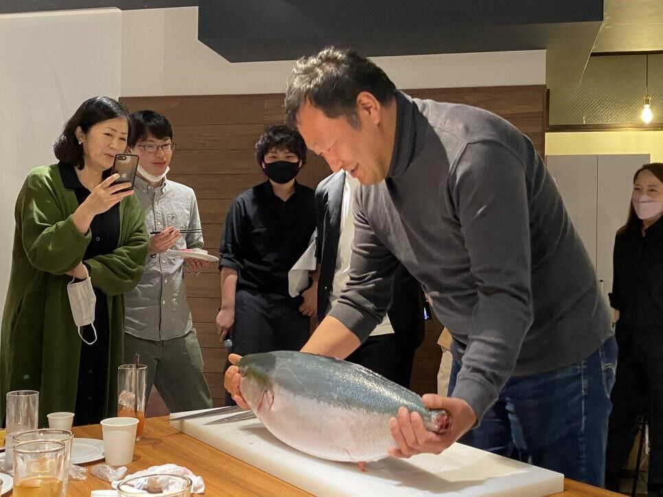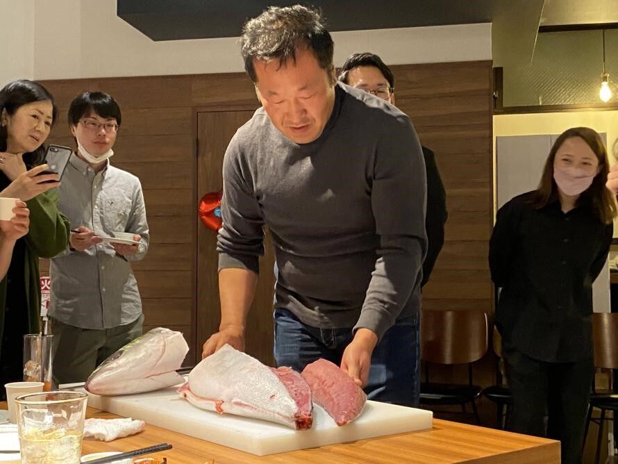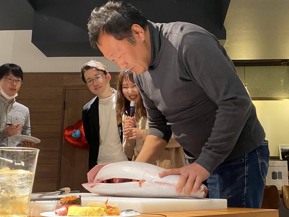 今回のパーティーでは碇社長による鰤の解体ショーと、寿司職人さんによる出張出前寿司という二大特別企画が用意されました。