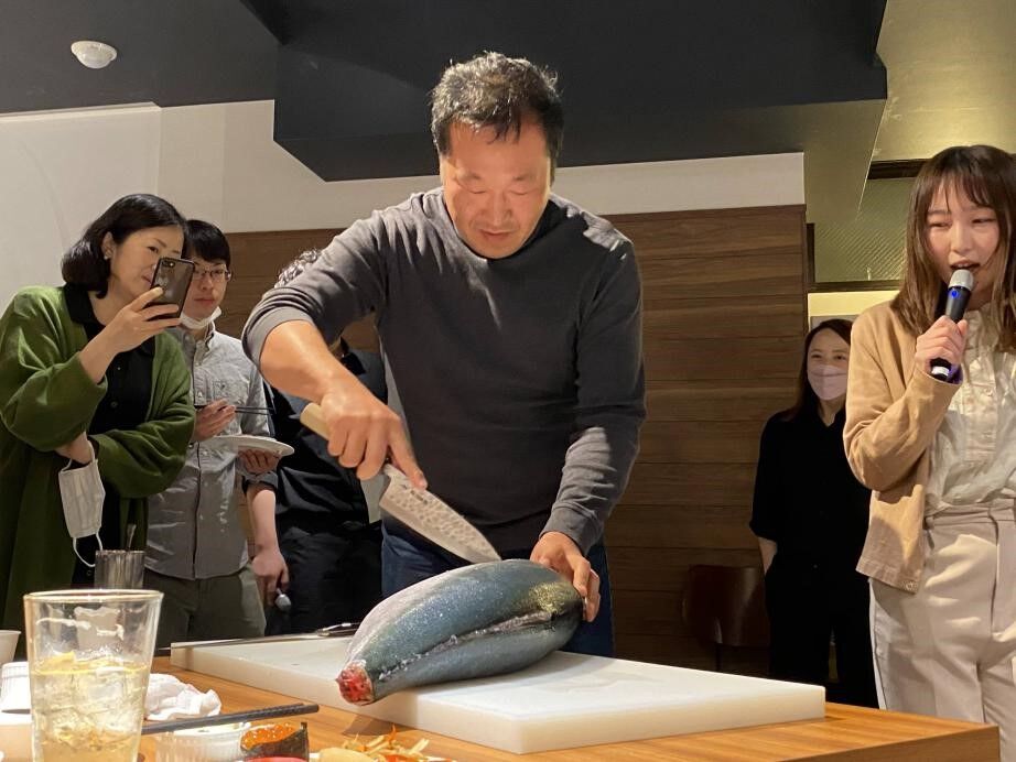 そして元漁師の社長ですが、魚を捌いている姿を見たことがある人は社員のなかでも少なく、私自身、貴重な瞬間を見ることができました!